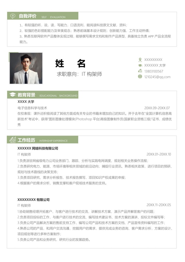 简介:it架构师极简逻辑简历模板,适用于it架构师、通用简历、求职简历、个人简历、商务简历、找工作简历、竞聘简历等相关的个人简历主题设计应用。